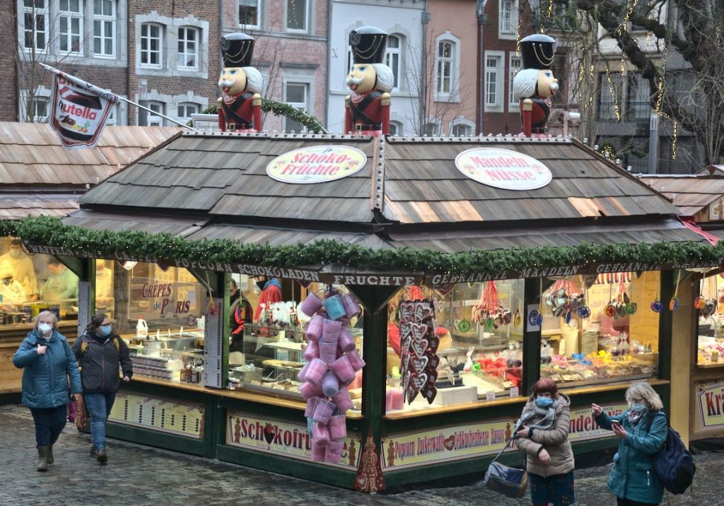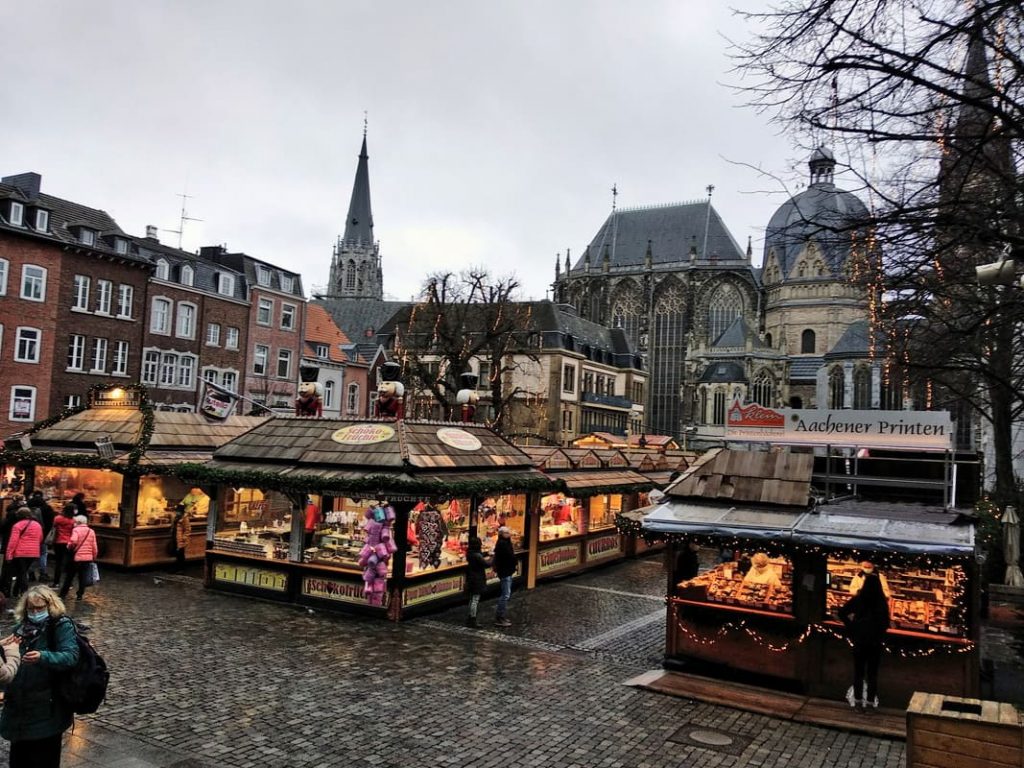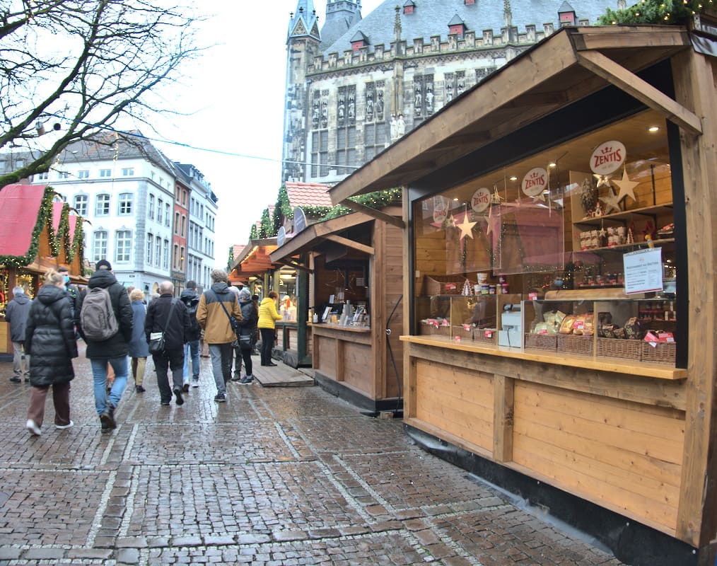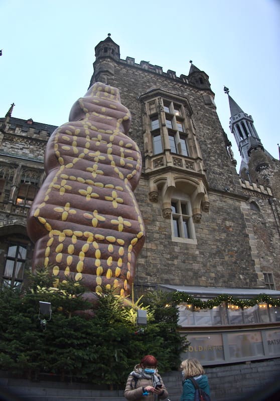 Waar gingen we nu op visite ? Bij Otto en Elke, die een vakantiehuis in ons dorpje Poggio Cupro bezaten. Bovendien was Elke de Duitstalige medeblogger van de Marche blog Eccole Marche ! Zij woonden in Aken en we hadden hen al heel lang beloofd om indien mogelijk bij hen langs te komen. Hun huis lag net aan de rand van Aken, zodat het centrum ervan gemakkelijk bereikbaar was. Samen bezochten we de Weihnachtsmarkt, één van de weinige Bundesländer waar ze het toelieten, mits 2G. Ook hier nostalgie herinneringen aan de Weihnachsmarkten van Keulen uit mijn jeugd !