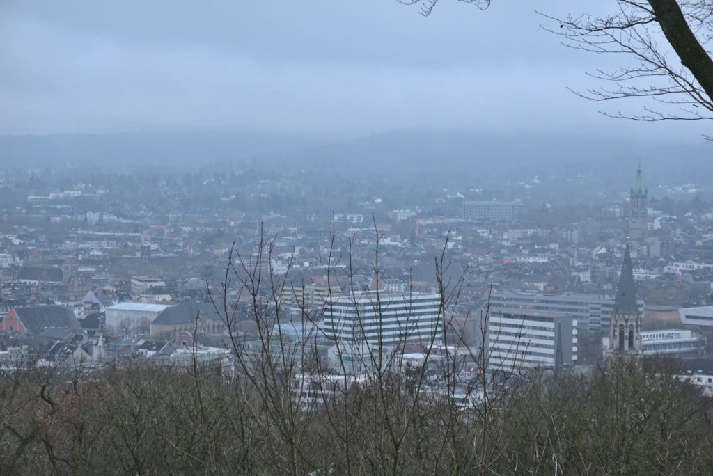 We stonden ook even op het hoogste punt van de stad, met toch nog wat uitzicht…maar daarna vluchtten we terug naar hun huis, waar we nog een gezellige avond beleefden en ’s morgens nog een Frühstück.