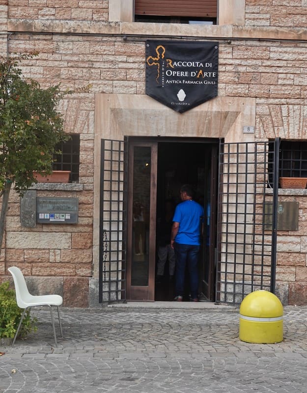 Op mijn terugweg bezocht ik Cerreto D’Esi. Tijdens de Monumentdagen leiden altijd scholieren de bezoekers rond. Kan mee-of tegenvallen. Het werd een interessant bezoek aan een oude apotheek die tevens enkele religieuze schilderijen en voorwerpen tentoonstelde. een supervriendelijke vrouw gaf hier ook wat uitleg.